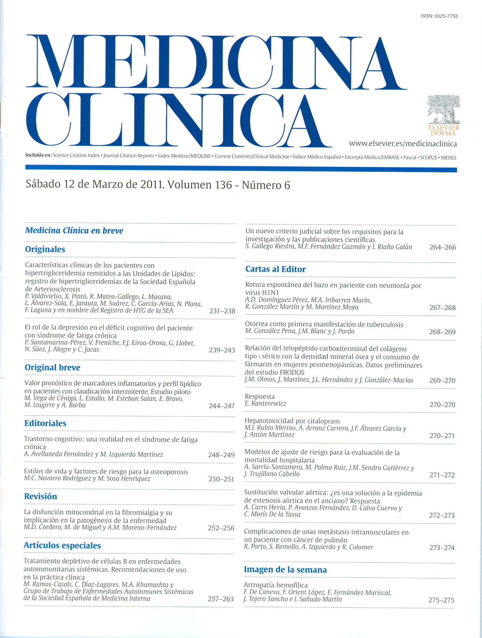 Valor pronóstico de marcadores inflamatorios y perfil lipídico en pacientes con claudicación intermitente: estudio piloto