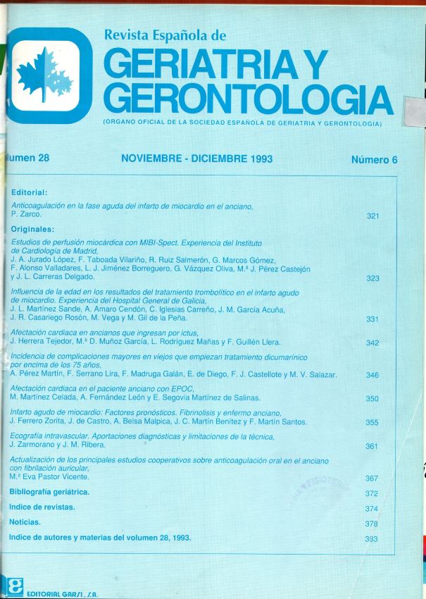 Anticoagulación en la fase aguda del infarto de miocardio en el anciano.