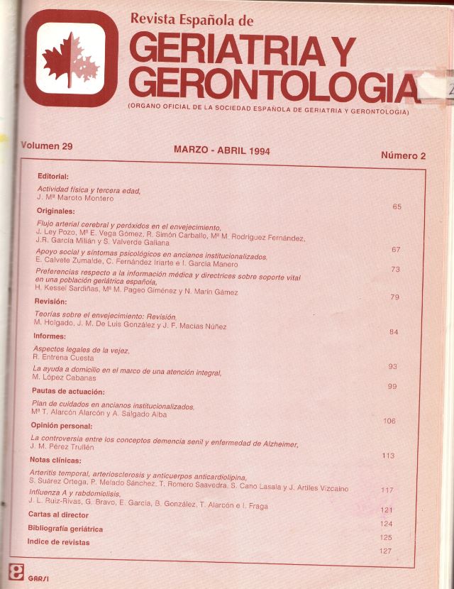 Apoyo social y síntomas psicológicos en ancianos institucionalizados