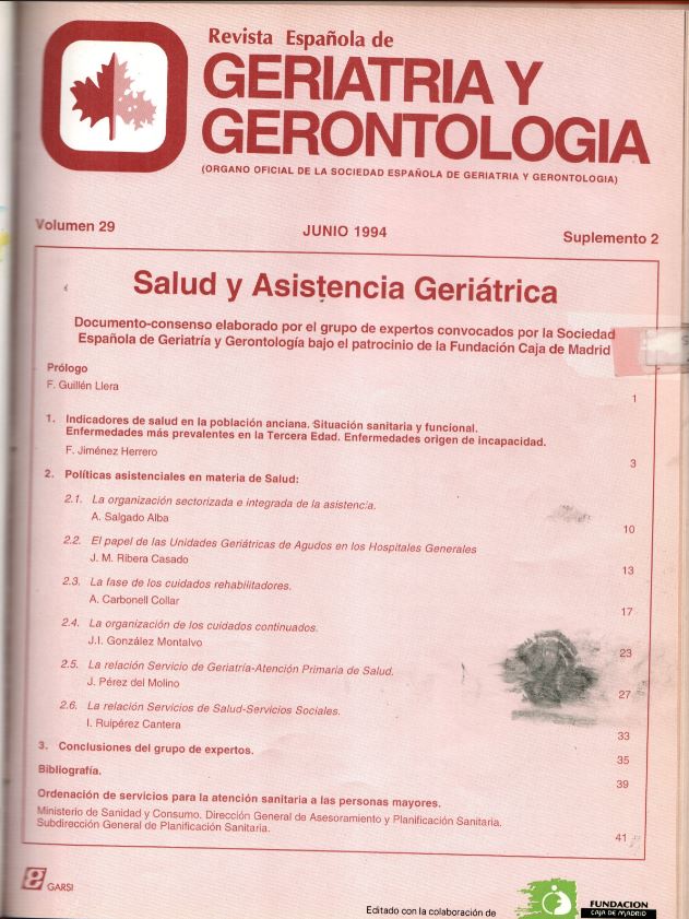 Salud y asistencia geriátrica: conclusiones del grupo de expertos. Documento-consenso elaborado por el grupo de expertos convocados por la Sociedad Española de Geriatría y Gerontología bajo el patrocinio de la Fundación Caja de Madrid