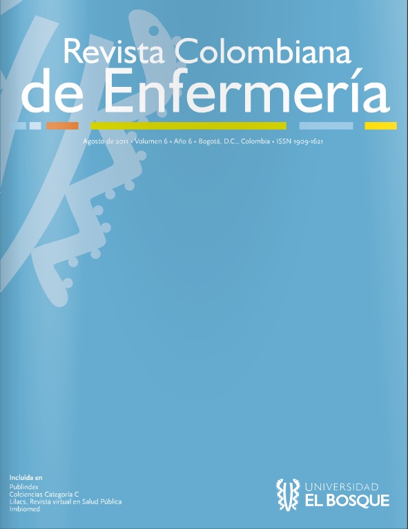 La Revista Colombiana de Enfermería se dedica a difundir los resultados de investigaciones y conocimientos en los diferentes campos de la salud y a promover el intercambio de opiniones que permitan fortalecer la disciplina de Enfermería y la calidad de vida de la población.