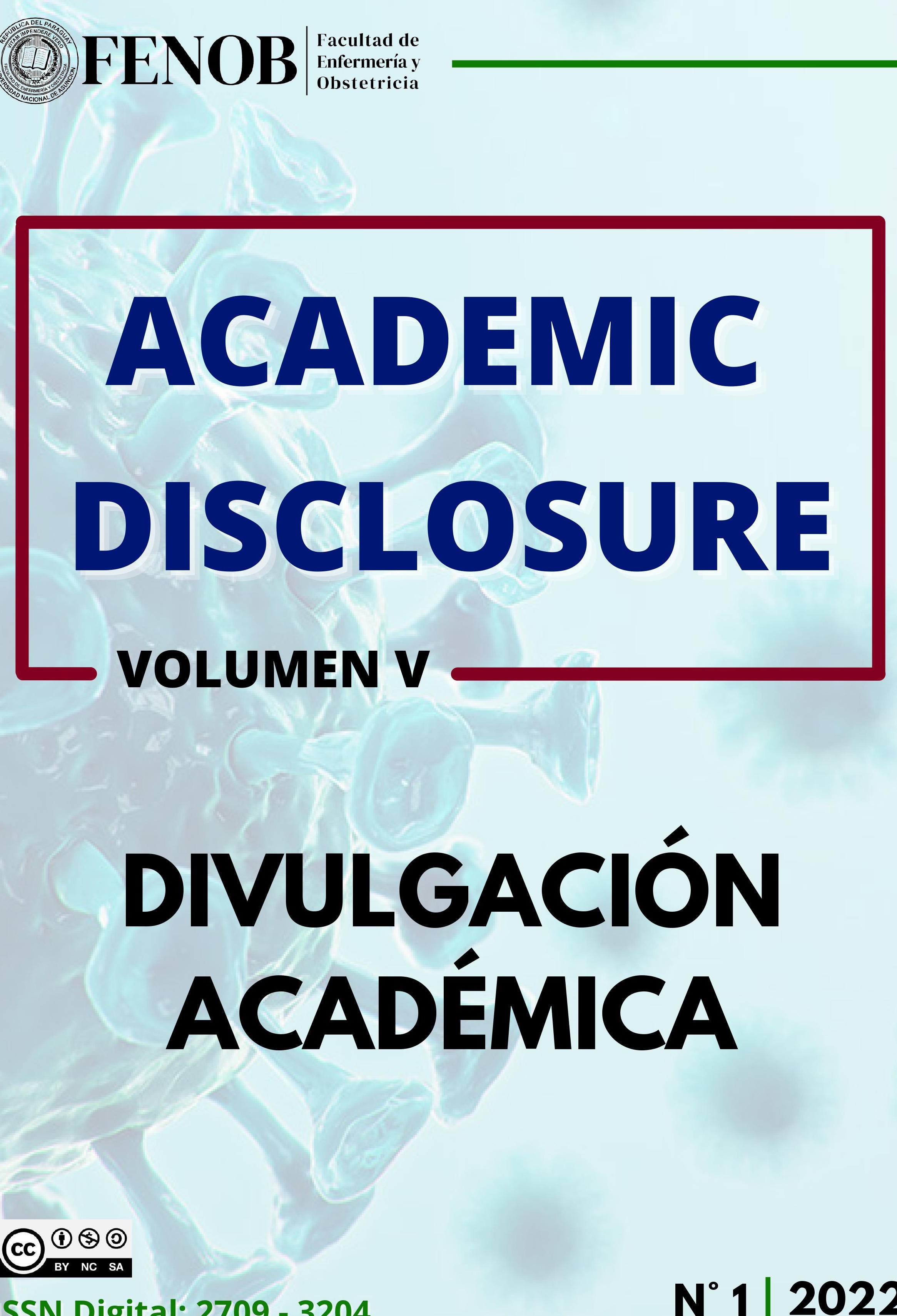 ACADEMIC DISCLOSURE es la Revista de la FENOB UNA, abierta a la comunidad científica nacional e internacional, arbitrada, divulga los avances y resultados de investigaciones en el área de Salud. En la revista se publican artículos científicos originales, artículos de revisión, notas de... (Ver más...)